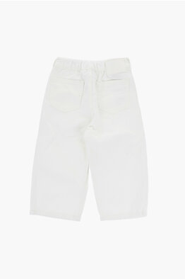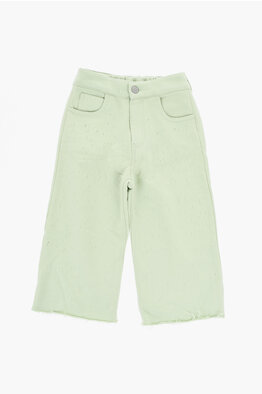 MM6 Pantaloni in Cotone Effetto Vintage Ad Orlo Sfrangiato