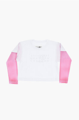 MM6 T-shirt Girocollo In Cotone con Maniche a Contrasto