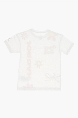 3 BRAND T-shirt Girocollo FIRED UP in Cotone con Stampa Graffiti Frontale