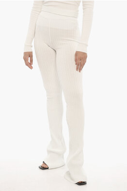 Pantaloni Bootcut in Tessuto Stretch con Elastico in Vita