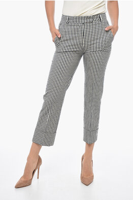 Pantaloni Chino con Motivo Gingham e Risvolto