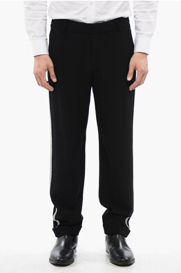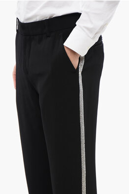 Pantaloni Chino in Viscosa con Bande Laterali in Cristalli