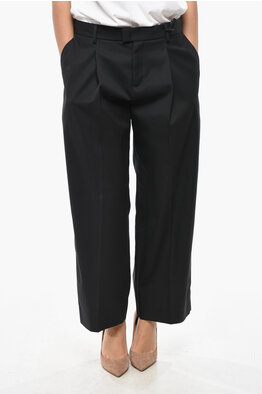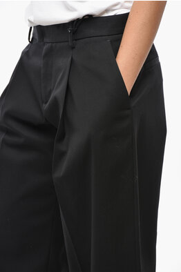 Pantaloni a 1 Pince in Tessuto Stretch a Gamba Ampia