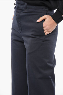 Pantaloni Cropped Fit in Twill di Cotone con Passanti