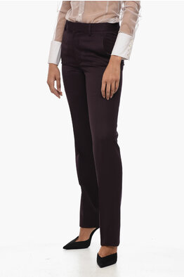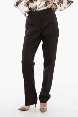Pantaloni Straight Fit in Lana Vergine con Chiusura Nascosta