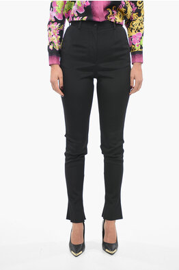 Pantaloni in Tessuto Stretch con Zip alla Caviglia