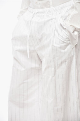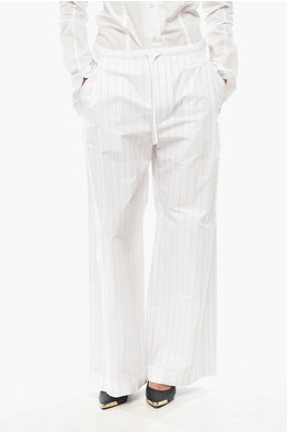 Pantaloni Straight Fit in Cotone Gessato con Coulisse in Vita