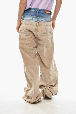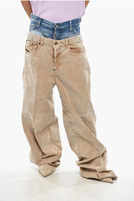 Pantaloni TWIN PACK in Velour a Coste a Gamba Ampia con Dettaglio in Denim