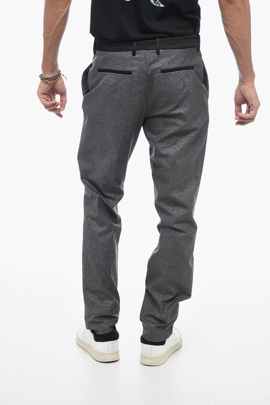 Pantaloni Sartoriali Effetto Glitter con Dettaglio in Satin