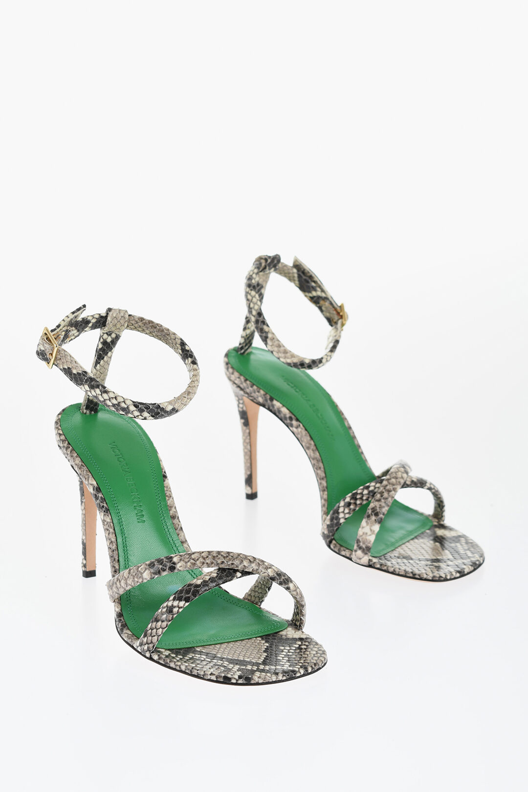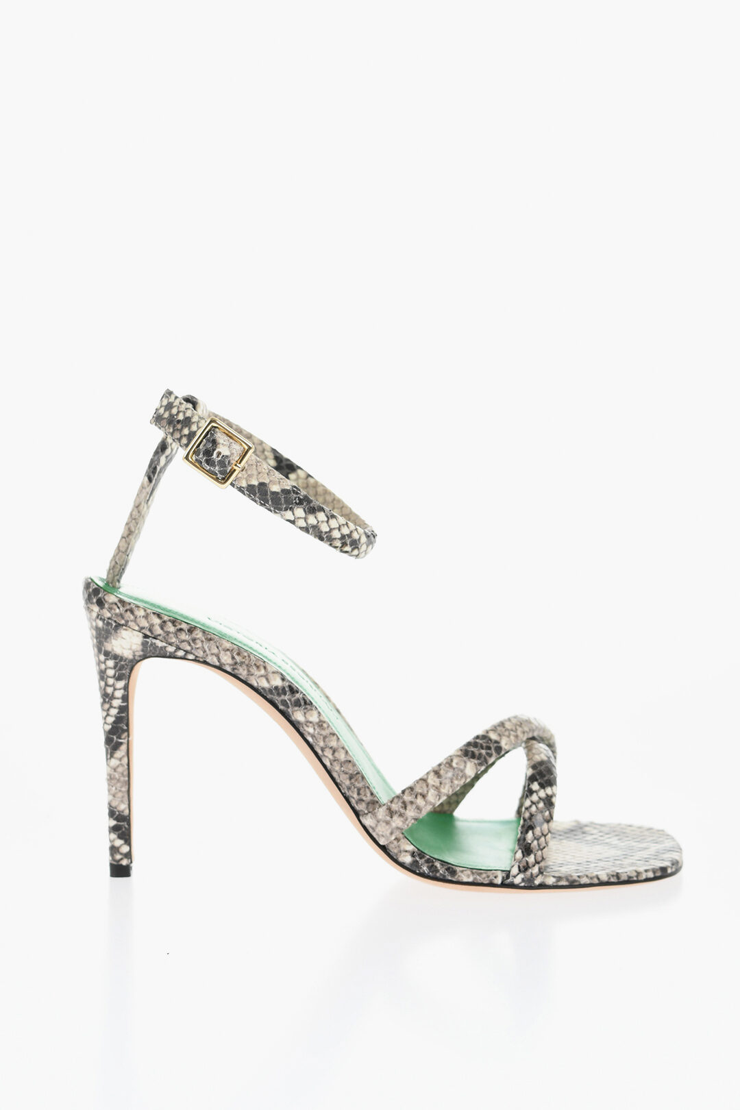 Sandali Ankle-Strap in Pelle Effetto Serpente Tacco 9cm
