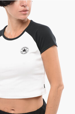 ALL STAR CHUCK TAYLOR T-Shirt Crop Bicolore con Logo Ricamato
