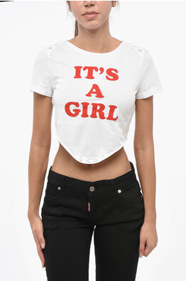 T-Shirt Girocollo Cropped Fit con Logo Stampato