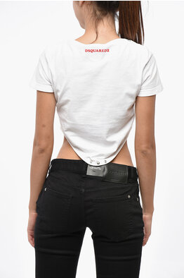 T-Shirt Cropped Fit in Cotone con Dettaglio See Through