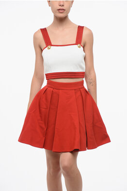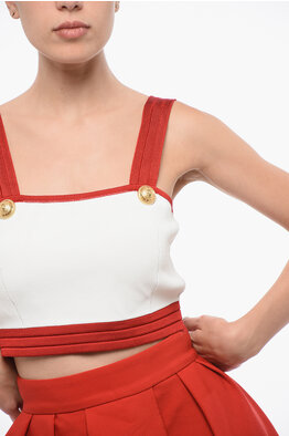 ICON Top Crop in Tinta Unita con Dettagli in Pelle e Logo in Lettering
