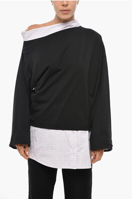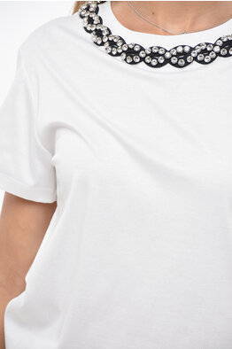 T-Shirt Girocollo in Cotone con Fodera in Popeline