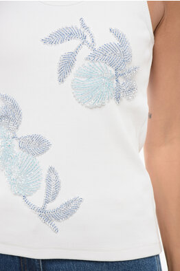 Tank Top in Cotone a Costine con Ricamo in Perline