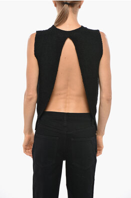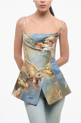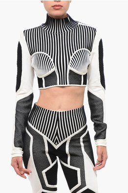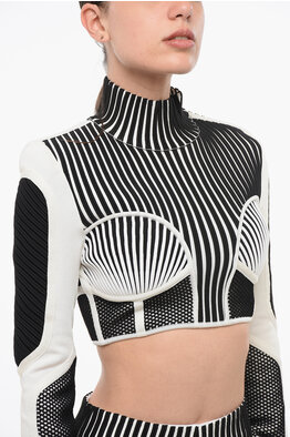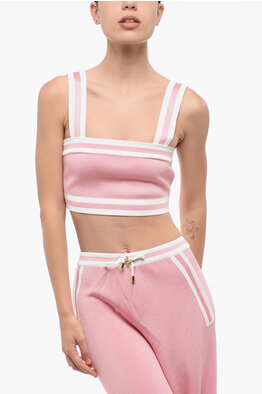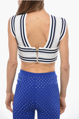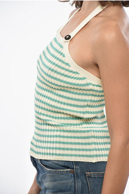 Top Halterneck in Maglia di Cotone Motivo Awning