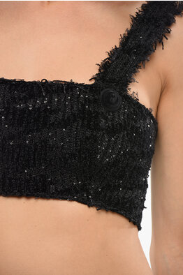 Top Crop in Tinta Unita Impreziosito da Paillettes