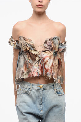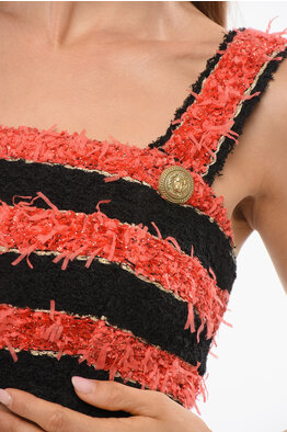 Tube Top in Misto Cotone Pied de Poule con Balza
