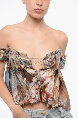 Crop Top Halter Neck in Cotone Motivo Azulejo