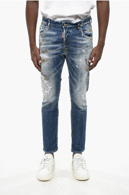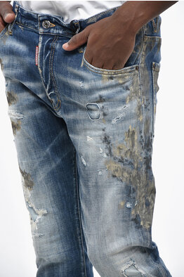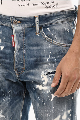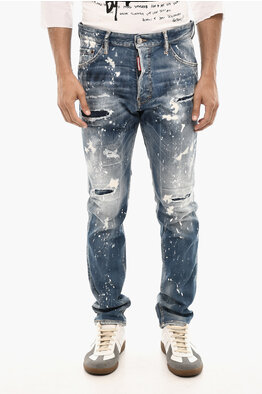 Jeans COOL GUY in Denim Stretch con Dettagli Effetto Vernice 17cm