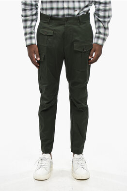 Pantaloni Cargo in Cotone Stretch con Logo Argentato