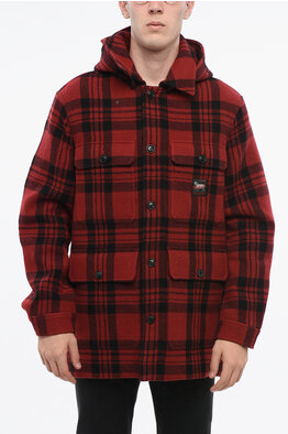 Overshirt Imbottito a Quadri plaid in Misto Lana