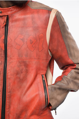 RED TAG Leather Jacket RUSCHA with Contrasting Sleeves
