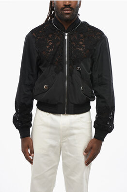 Solid-Color Bomber with Lace Inserts and Silver Monogram