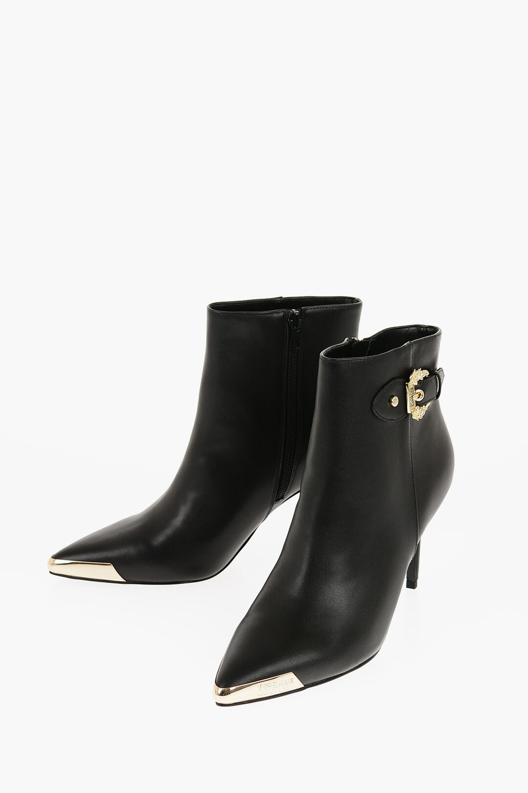 JEANS COUTURE Faux Leather Ankle Booties SCARLETT with Side Zip and Gold Detail 9cm Heel