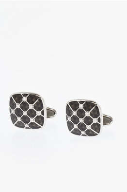 Polished Metal Cufflinks with Crystal Embellished Inserts