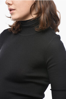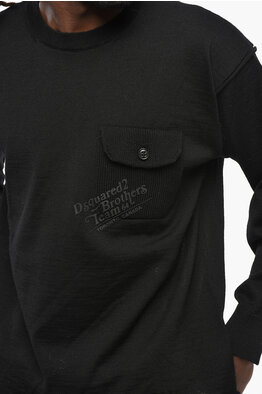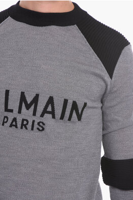 Virgin Wool Crewneck Sweater with Ribbed Details