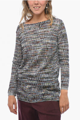 Stretch Fabric Crewneck Sweater with Lurex Edging
