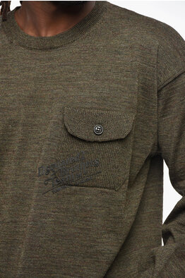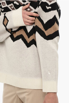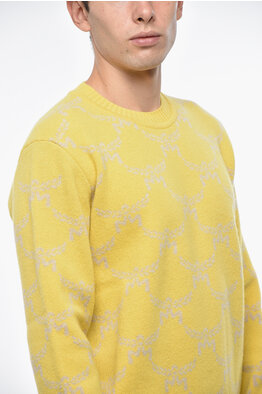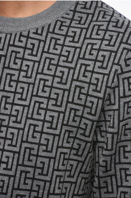 Wool-Linen Crewneck Sweater with All-Over Monogram