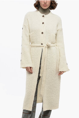 Blended Alpaca Wool Long Cardigan with Buttoms Detail