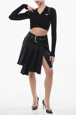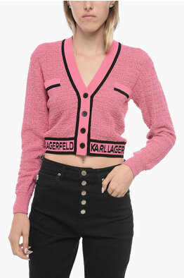 Bouclè Fabric Cropped Cardigan with Logoed Band