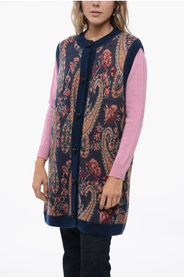 Buttoned Maxi Vest with Paisley Motif