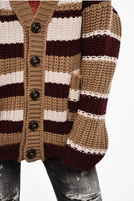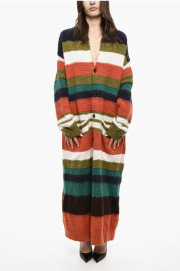 Striped Wool Blend Long Cardigan