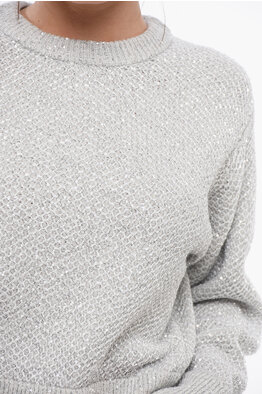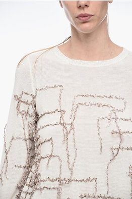Crew Neck Sequined Wool Sweater with Back Cut-out