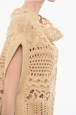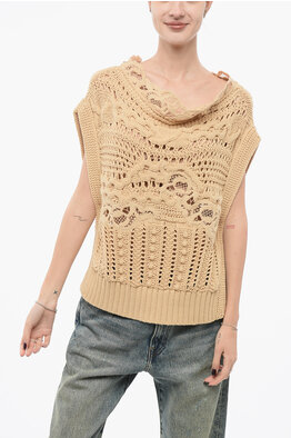 Crochet Cotton Blend Sleeveless Sweater with Lace Detail
