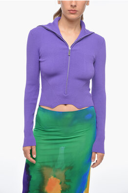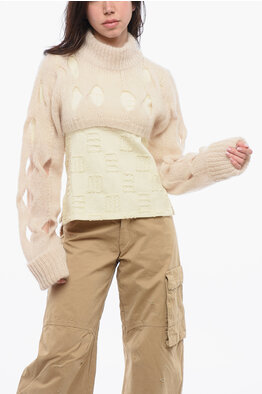 Cropped Turtleneck Sweater with Cut-Out Details