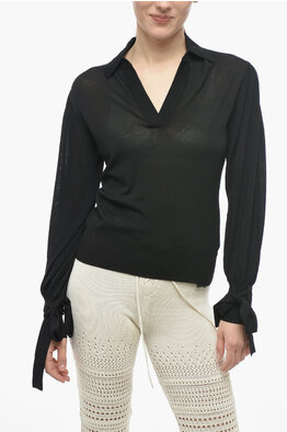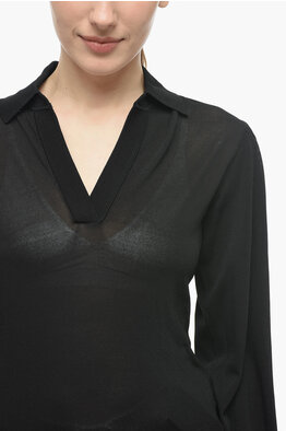 Ribbed Cashmere Blend Sweater with Polo Neck