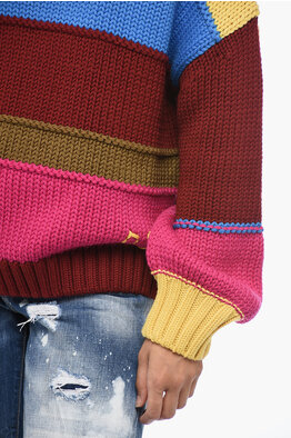 Virgin Wool Blend CURLIN Crewneck Sweater with Batwing Sleeves