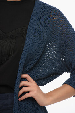 Short Sleeved Cotton Blend Open Front Cardigan