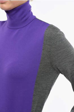 Two-Tone Wool Blen Turtleneck Sweater