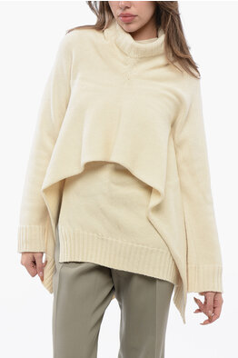 Wool Long Sweater with Asymmetric Hem