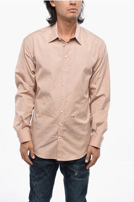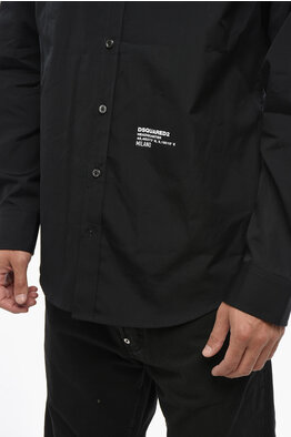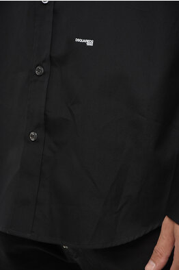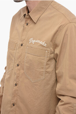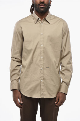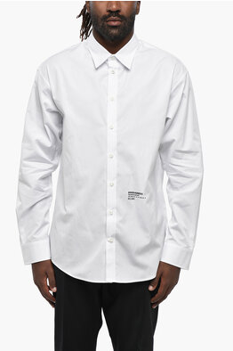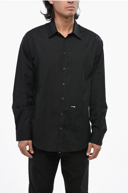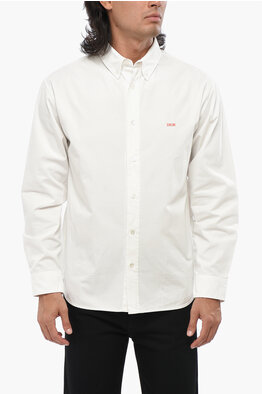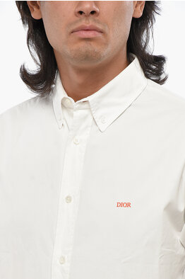 Button-Down Collar Poplin Cotton Shirt with Embroidered Logo