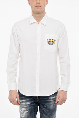 Cotton Poplin Shirt with Embroidery on the Breast Pocket