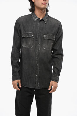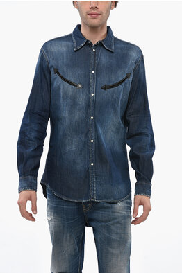 Denim D-SIMPLY-RS Shirt with Frayed Details