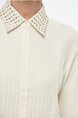 슬림 핏 블라우스 GIGI 보석 장식 칼라